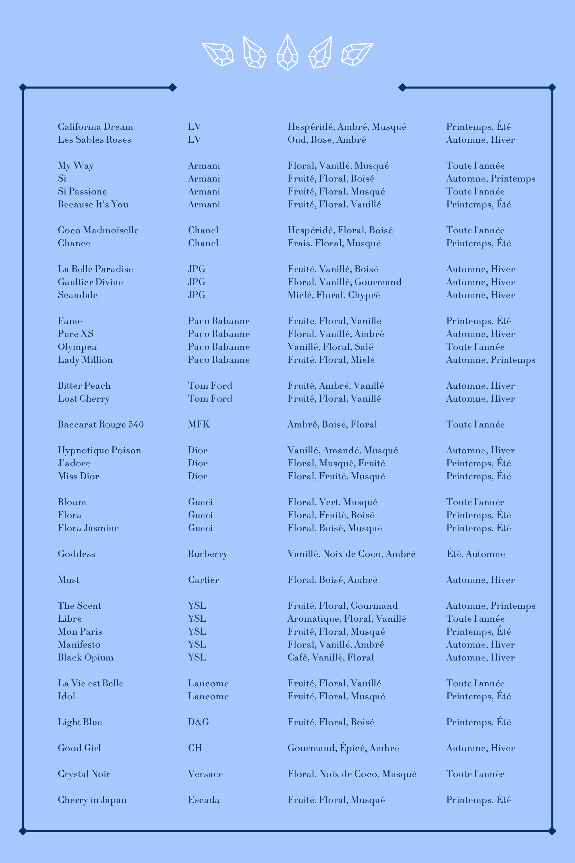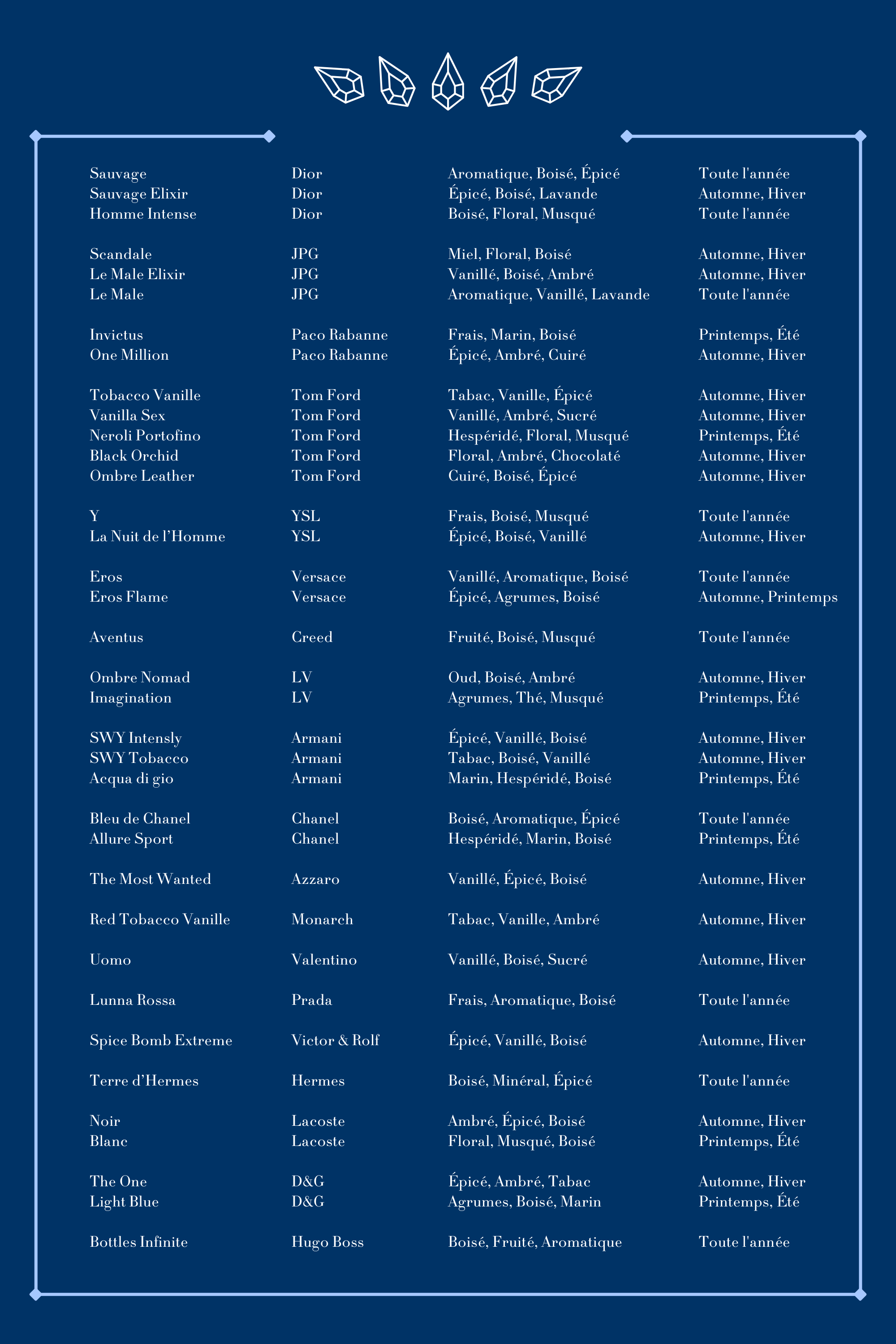 Comme une pierre précieuse, un parfum révèle sa véritable beauté en profondeur. Chez Myscent, nous transformons l’essence du raffinement en fragrances accessibles, offrant le prestige sans compromis. Chaque senteur est un joyau secret, prêt à être découvert.